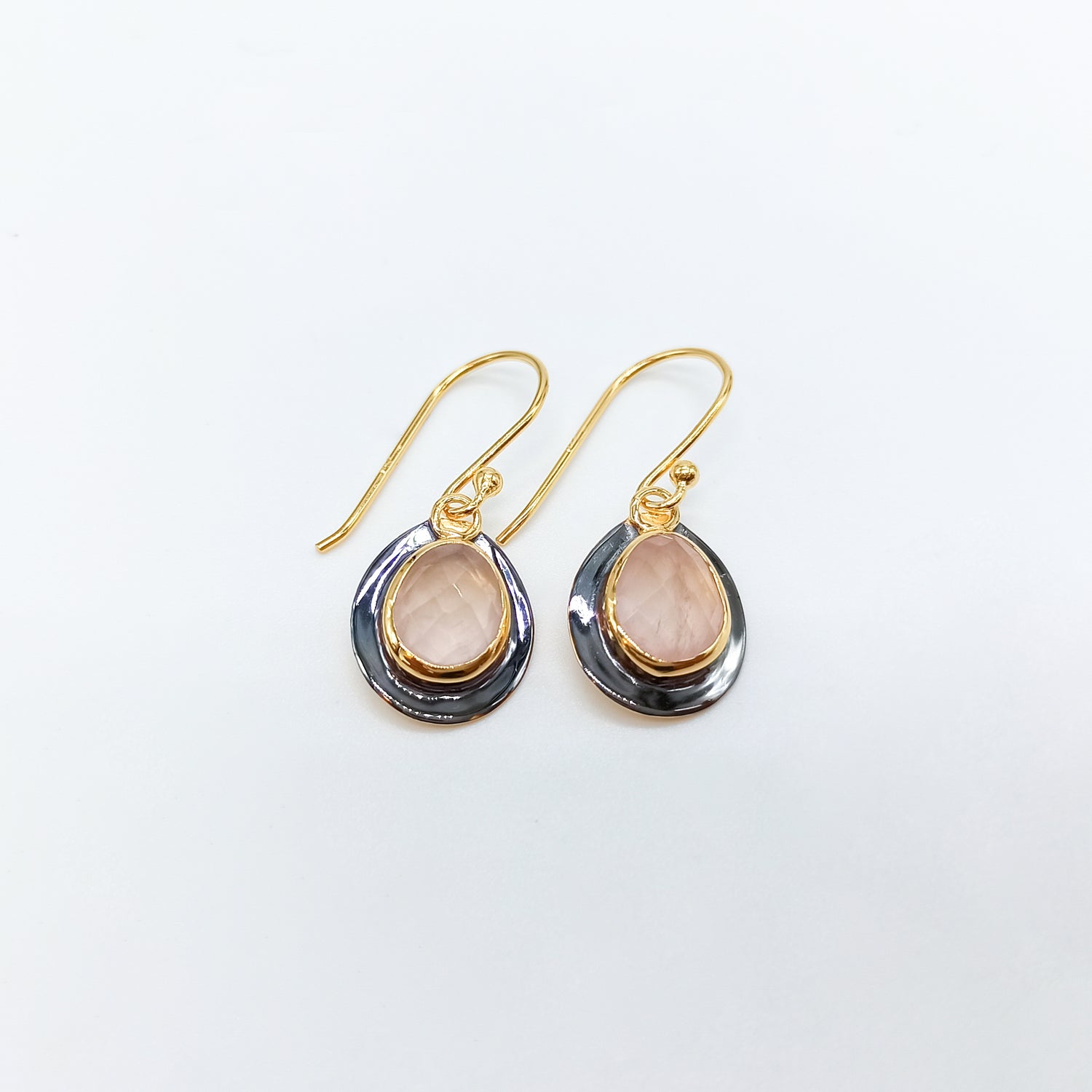 Pendiente Somme Labradorita y Cuarzo Rosa Plata 925 Baño Oro 18k